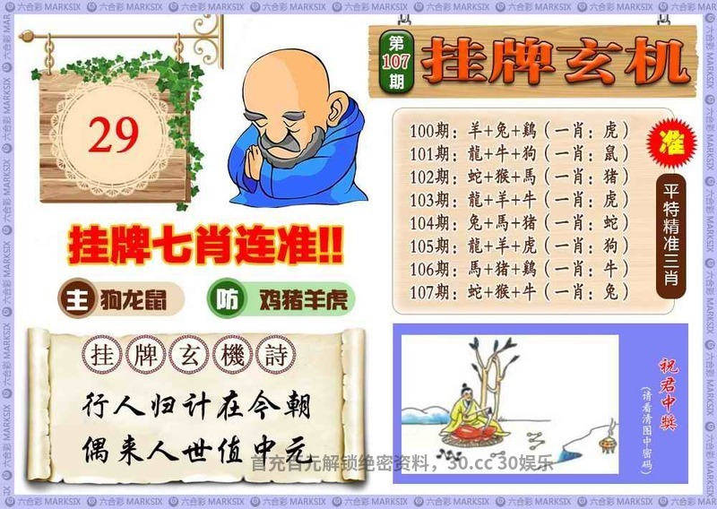 107期:⑧肖【狗鼠蛇羊马猴虎龙】开:鸡33